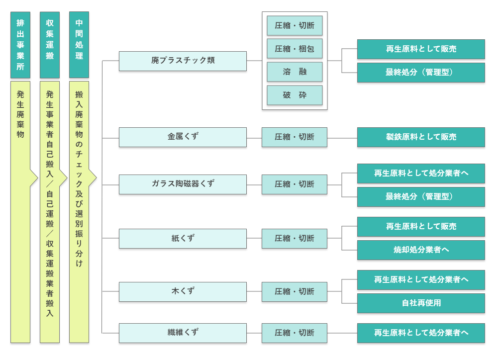 | 事業内容 | 一般廃棄物並びに産業廃棄物の収集運搬業 産業廃棄物の中間処理業(圧縮切断・圧縮梱包・溶融・破砕) 再生資源処理加工の業務(鉄・非鉄・古紙) |